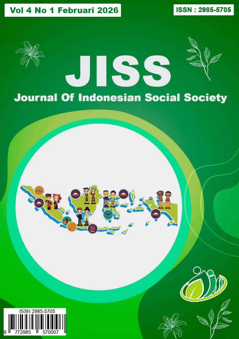 Vol. 3 No. 2 (2025)Journal Of Indonesian Social Society (JISS) Adalah jurnal yang memuat hasil Pengabdian atau kegiatan yang dilakukan oleh seseorang atau sekelompok individu untuk memberikan manfaat bagi masyarakat. Jurnal ini bertujuan untuk menyebarluaskan hasil Pengabdian Kepada masyarakat (PKM) yang dapat dijadikan sebagai referensi atau sumber informasi bagi masyarakat dan pihak lain yang berkepentingan. dalam jurnal ini akan menggabungkan beberapa bidang ilmu yang berbeda atau multidisiplin ilmu untuk memecahkan masalah atau menjawab pertanyaan yang lebih kompleks.